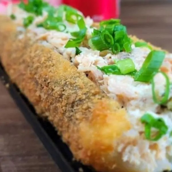 Hot Aberto Recheio De Salmão Em Cubos Empanado E Frito, Cream Cheese, Cebolinha E Tarê.