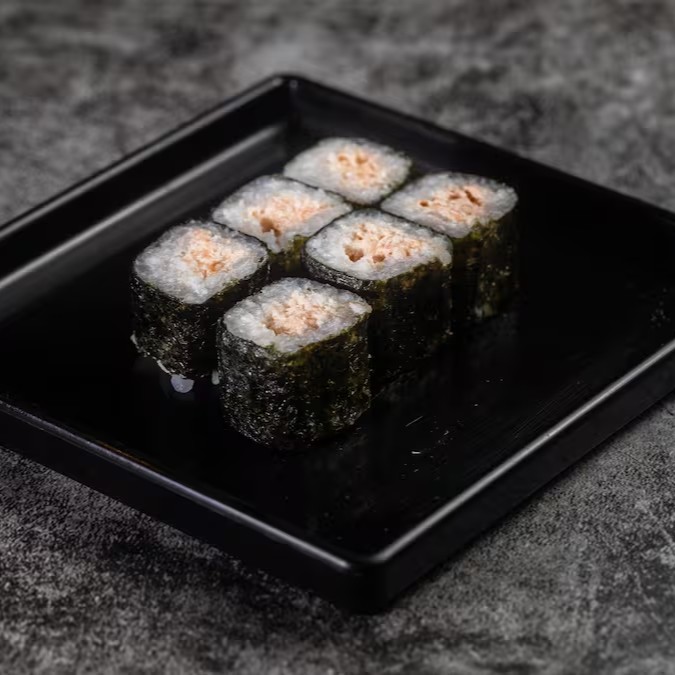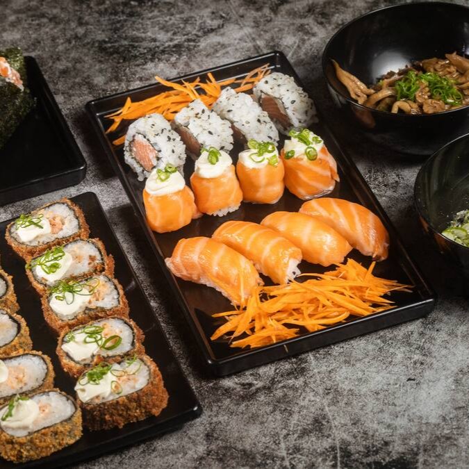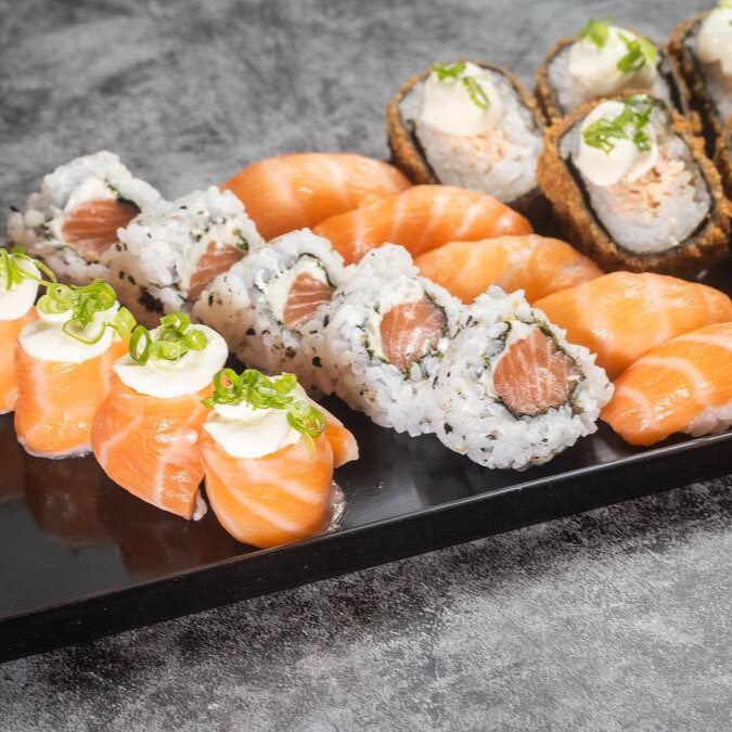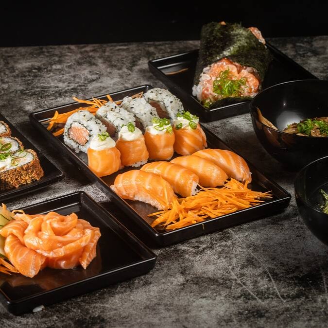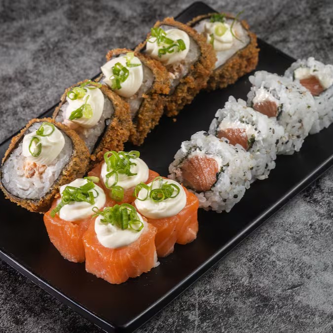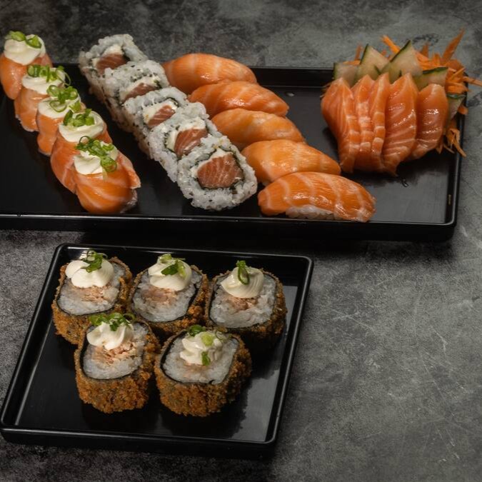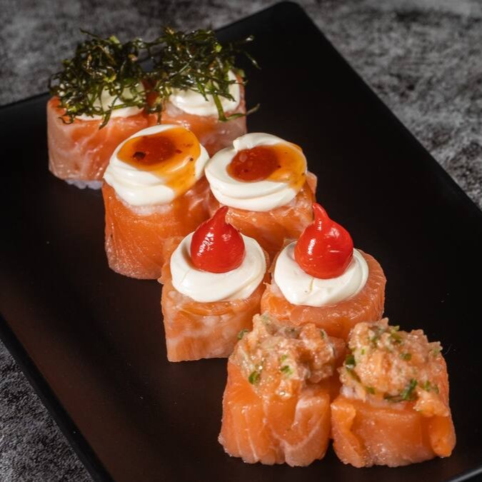 Experimente o sofisticado uramaki de salmão, com arroz e alga envolvendo o salmão. Uma combinação harmoniosa e deliciosa de sabores.