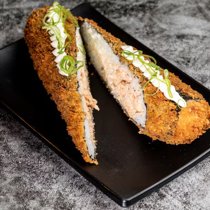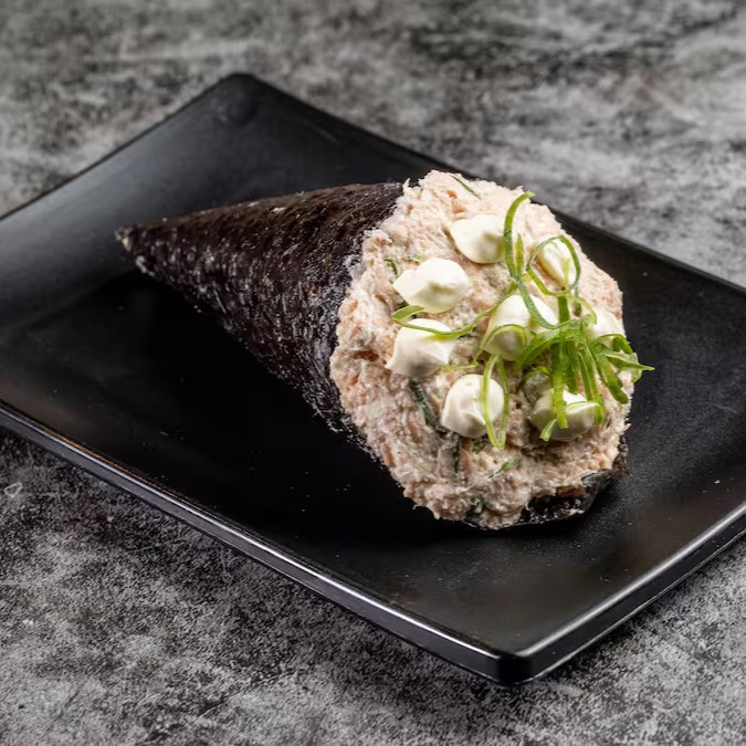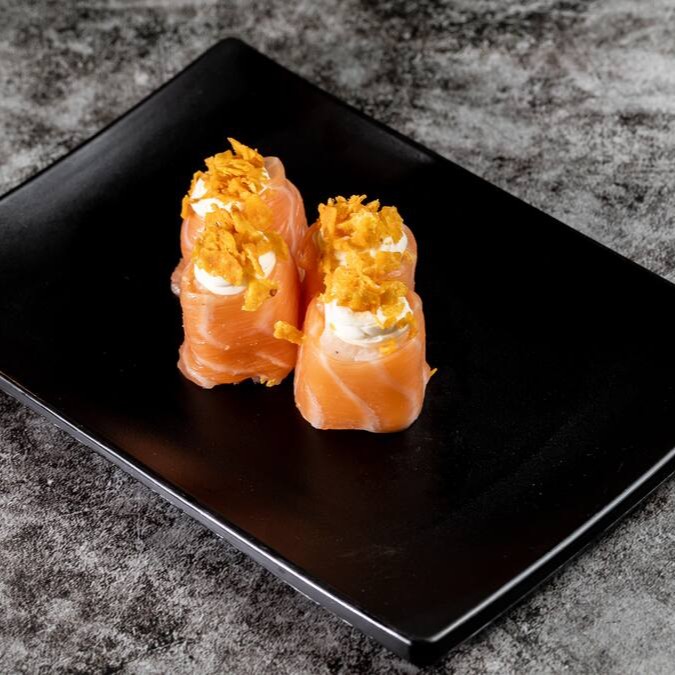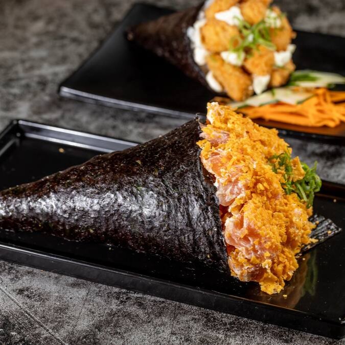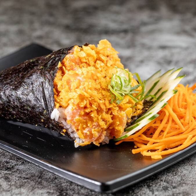 Temaki recheado com um delicioso arroz, salmão grelhado, cream cheese e cebolinha. Crocante por fora e irresistível por dentro! Uma explosão de sabor em cada mordida.