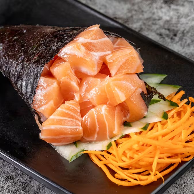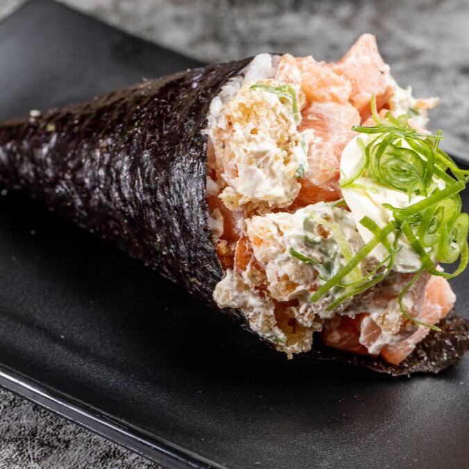 O temaki que é gigante no tamanho e no sabor! Recheado generosamente com arroz, salmão, cream cheese e cebolinha para você se deliciar a cada mordida.