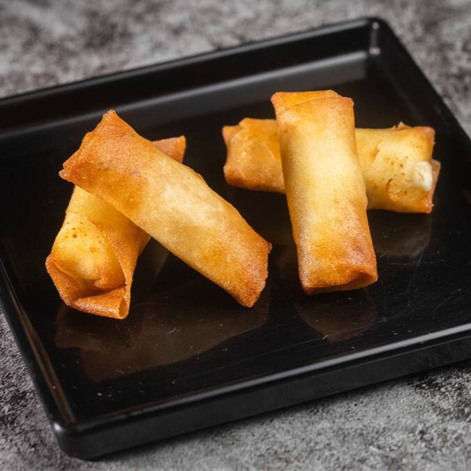 Delicioso rolinho primavera crocante, recheado com queijo derretido e irresistível. Perfeito para um lanche saboroso ou para acompanhar sua refeição!