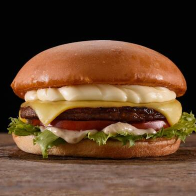 Pão Brioche, Hamburguer tradicional 90g, quejo cheddar e Molho da casa