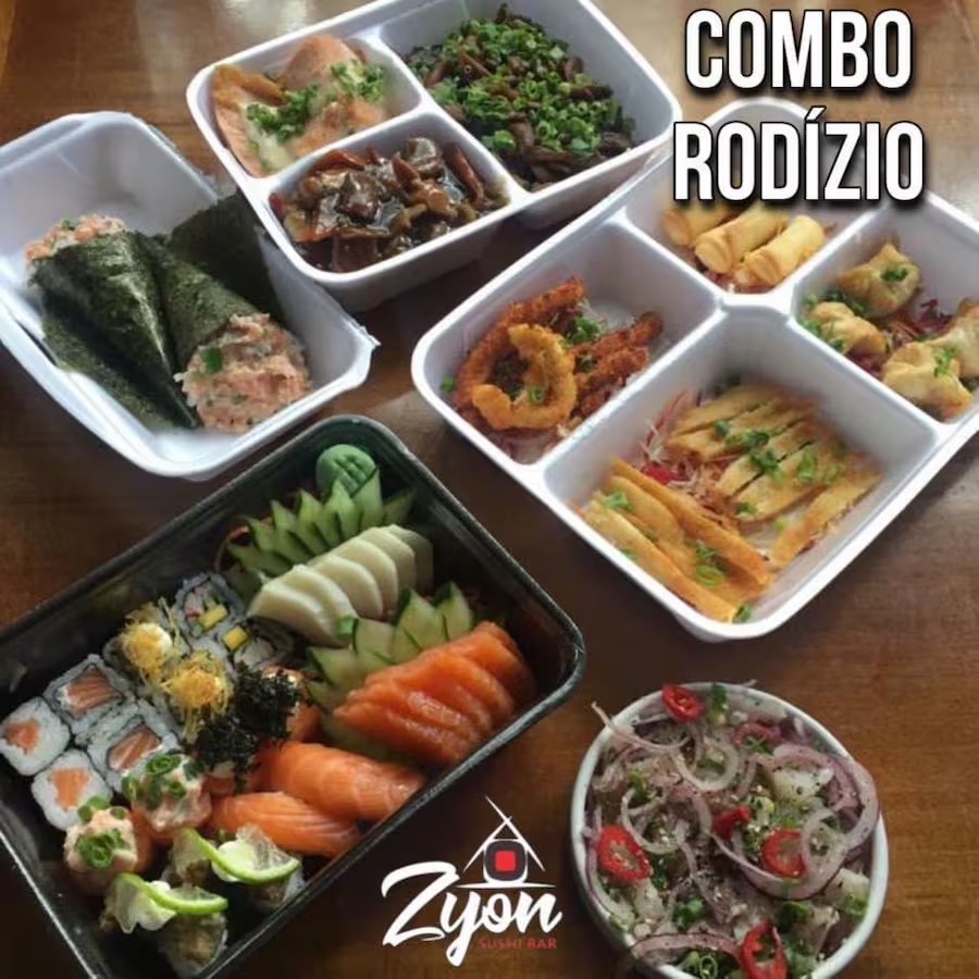 1 porção shimeji 300 gramas,2 pedaços salmão grelhado, 2 guiosa, 2 harumaki de queijo,1 yakissoba, 1 porção de lula a dore, 1 porção de chikencatsu, 2 temakis de salmão, 6 sashimis salmão, 6 sashimis peixe branco, 14 sushis variados (escolha do sushiman)