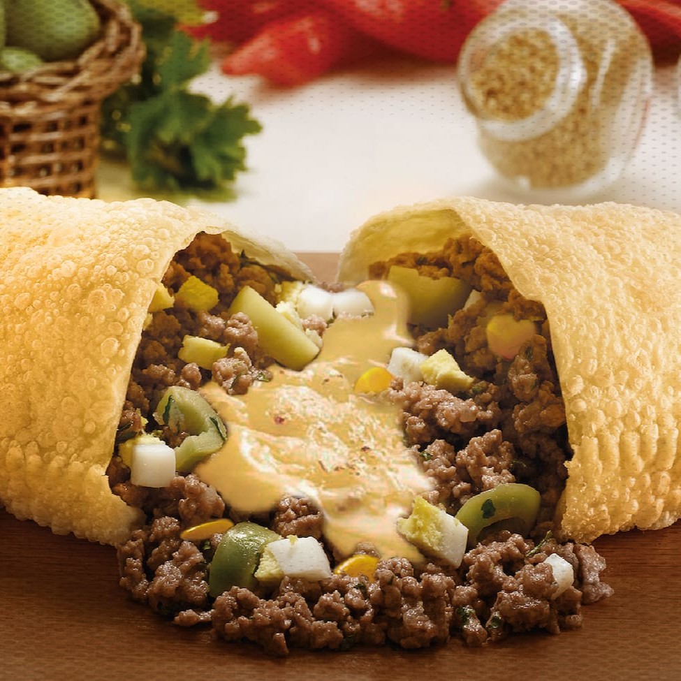 Deliciosa massa crocante recheado de nossa carne moída suculenta.