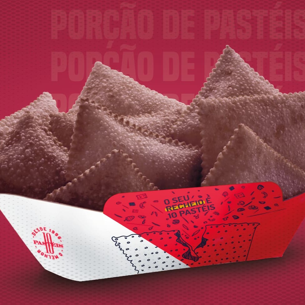 Saborosíssimo pastel de massa crocante, recheado de carne moída, peito de frango desfiado, queijo muçarela, ovo, palmito em pedaços, requeijão cremoso, milho, azeitona e orégano