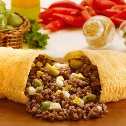 Deliciosa massa crocante recheado de nossa carne moída suculenta, ovo e azeitona.