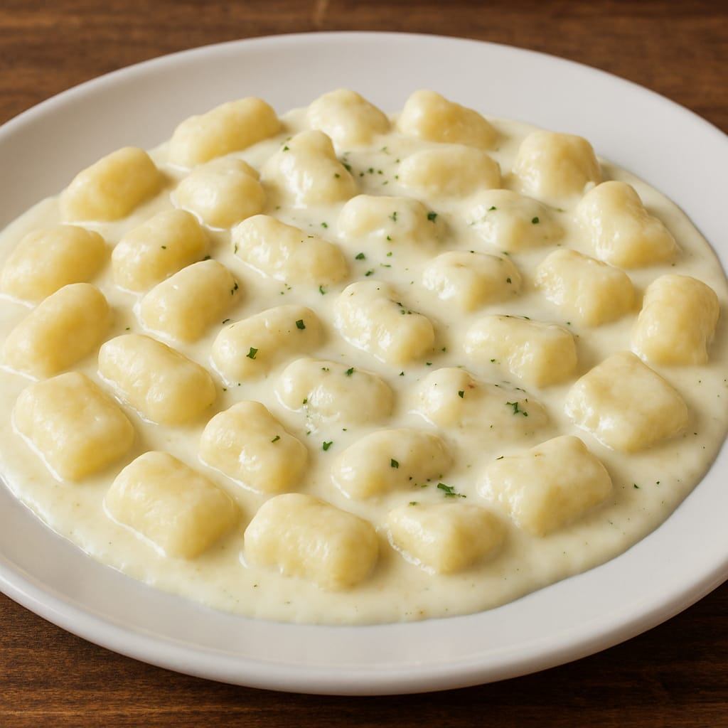O 'Nhoque de Batata com Molho de provolone' é uma autêntica delícia da cozinha italiana, meticulosamente preparada.