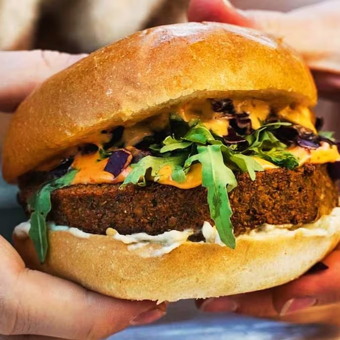 Seu hambúrguer já começa com Pão brioche, hambúrguer de lentilha com soja (70g) e maionese.