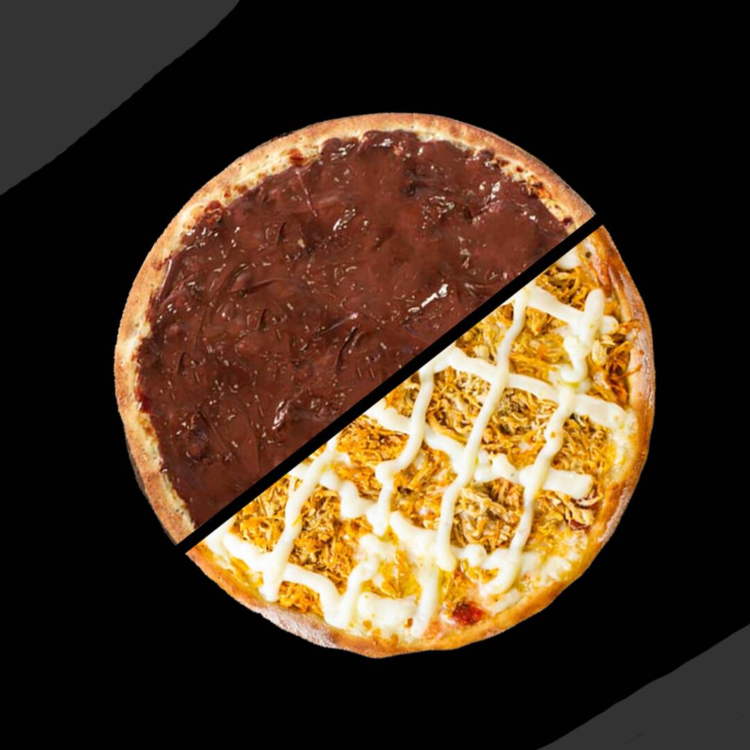 Pizza Grande Meia Frango Com Requeijão E Meia Chocolate