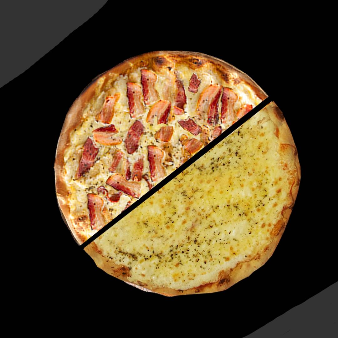 Pizza Grande Meia Quatro Queijos E Meia Bacon