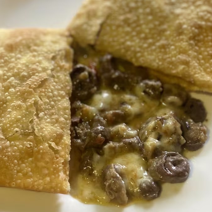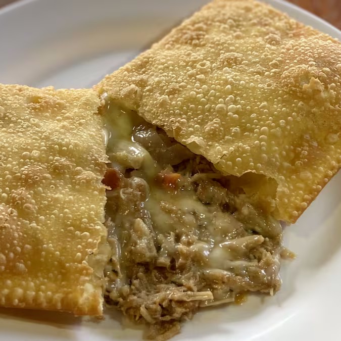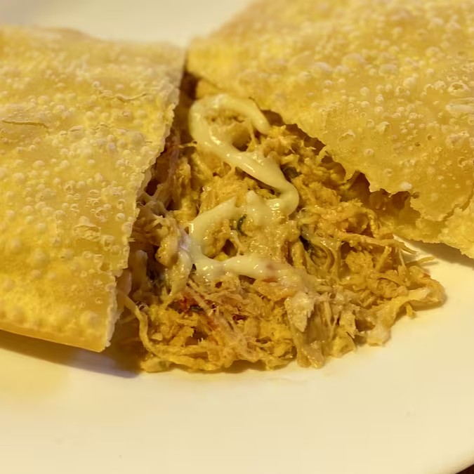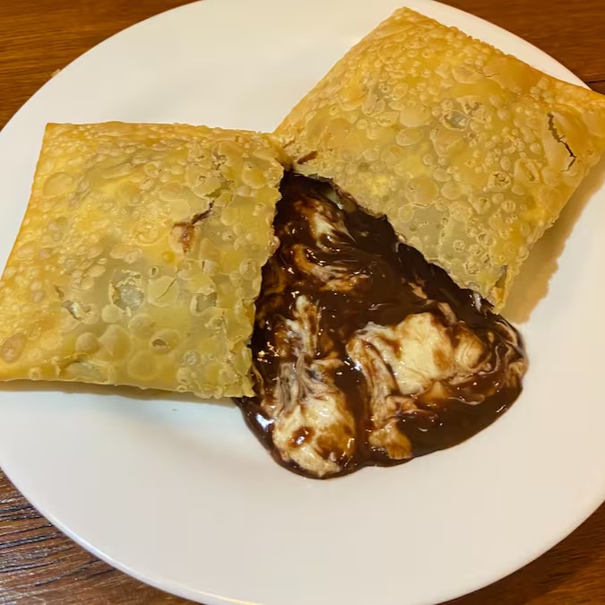 Pastel com recheio de queijo provolone, cheddar, queijo mussarela e cream cheese.