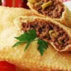Delicioso pastel com recheio de carne e queijo, + Um Pastel doce com recheio de Banana, canela e açúcar