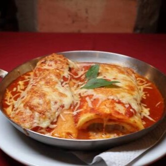 Massa leve e macia recheada de carne moida cozida lentamente com especiarias e molho passata finalizada com queijo parmesão gratinado;