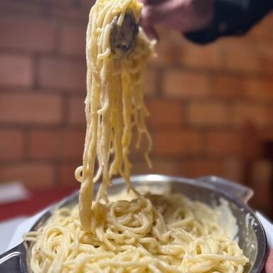 Massa caseira feito com nosso delicioso molho quatro queijos: parmesão, mussarela, gorgonzola, e provolone.