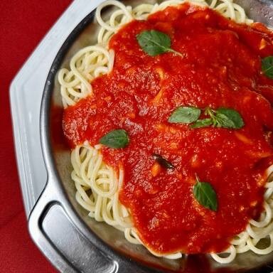 Massa caseira feita com a nossa passata de tomates pelados, cozida lentamente por 6 horas.