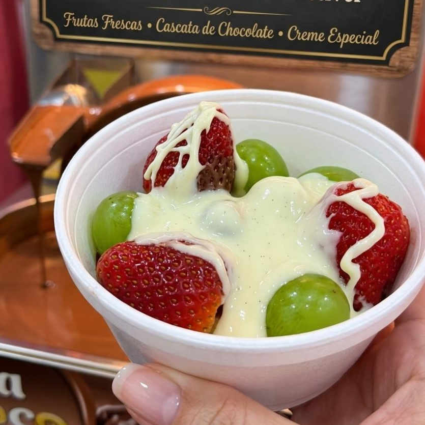 Fondue com dois chocolates à sua escolha, combinado com três frutas frescas para saborear. Tamanho único: 240ml Embalagem térmica descartável.