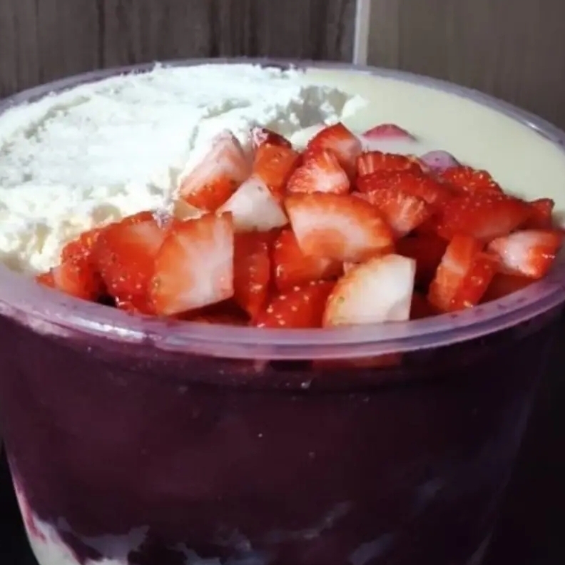 Aproximadamente 800ml de Açaí (Escolha 7 complementos GRATIS) complementos líquidos podem se misturar com os demais!!