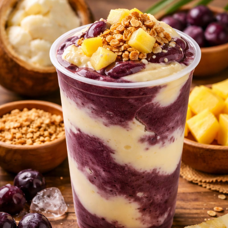 Açaí de 350 ml cremoso e refrescante,cheio de. Sabor.