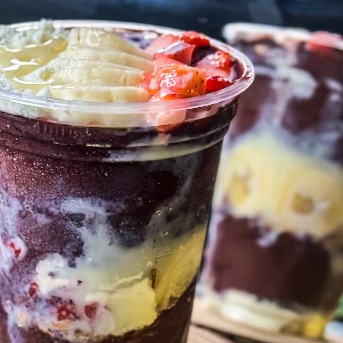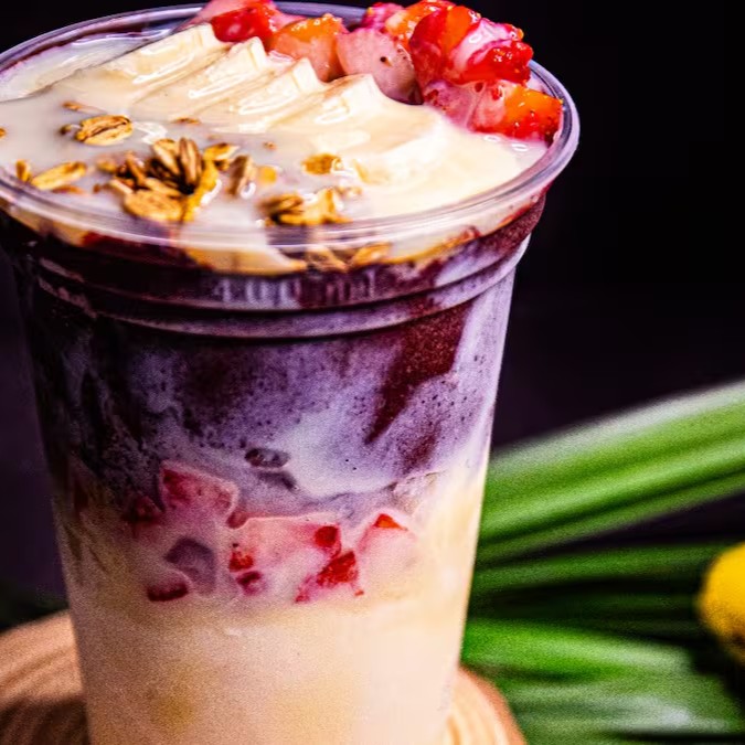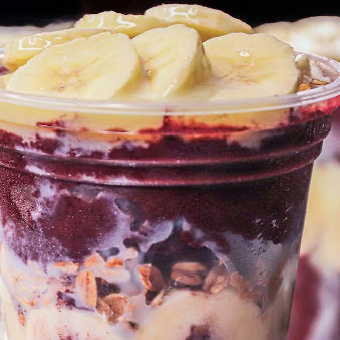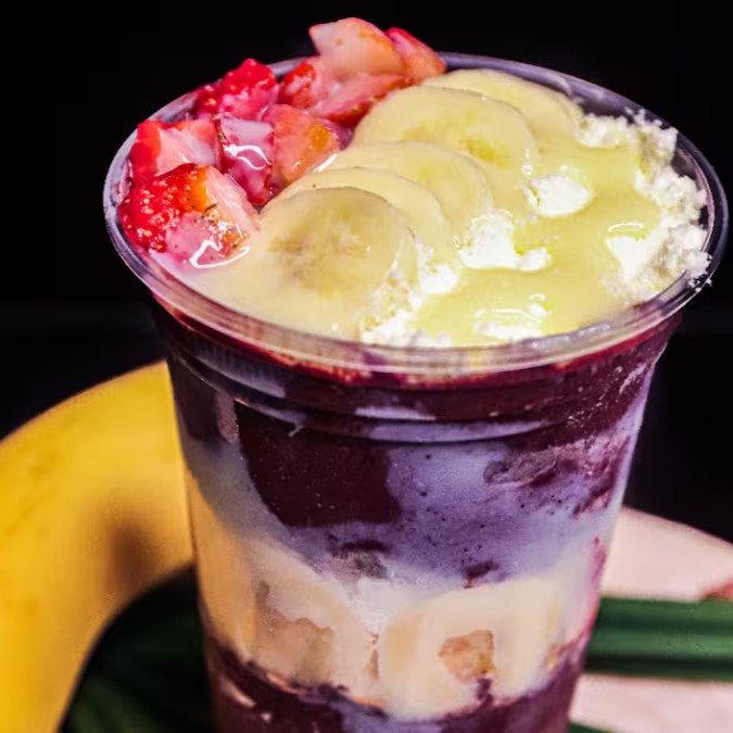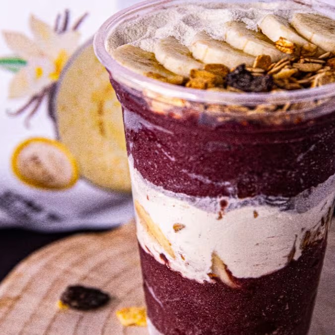 Copo de açaí de altíssima qualidade com Whey Protein(Baunilha), Banana e Granola.