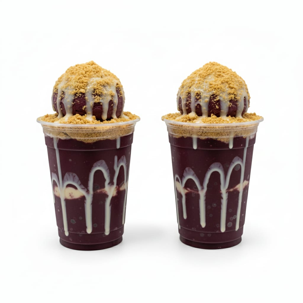 Combo Duplo de Açaí – 2 Copos de 500ml Duas vezes mais sabor! Esse combo traz dois copos generosos de 500ml de açaí cremoso, perfeito pra dividir com alguém especial (ou guardar só pra você ). Escolha seus complementos favoritos e aproveite cada colherada! 3 Complementos