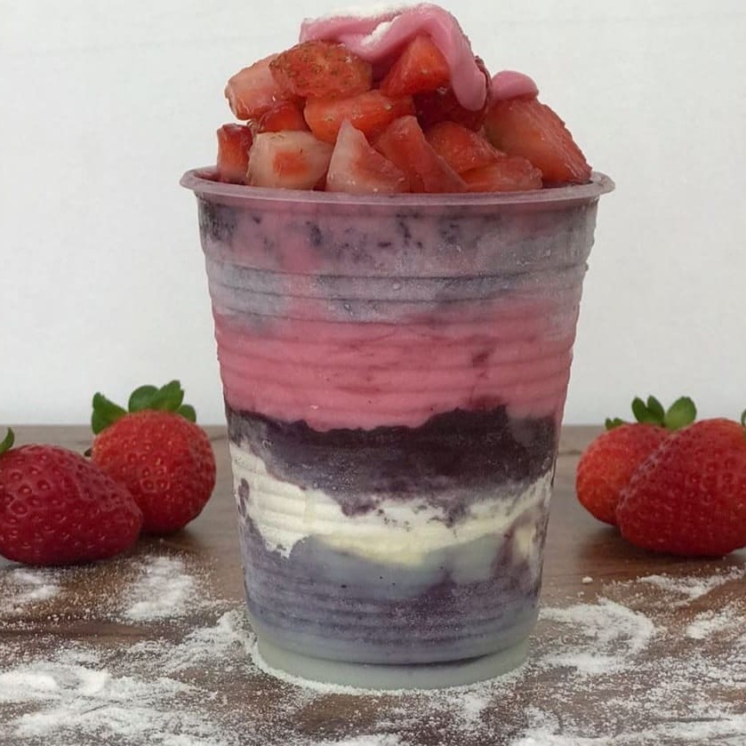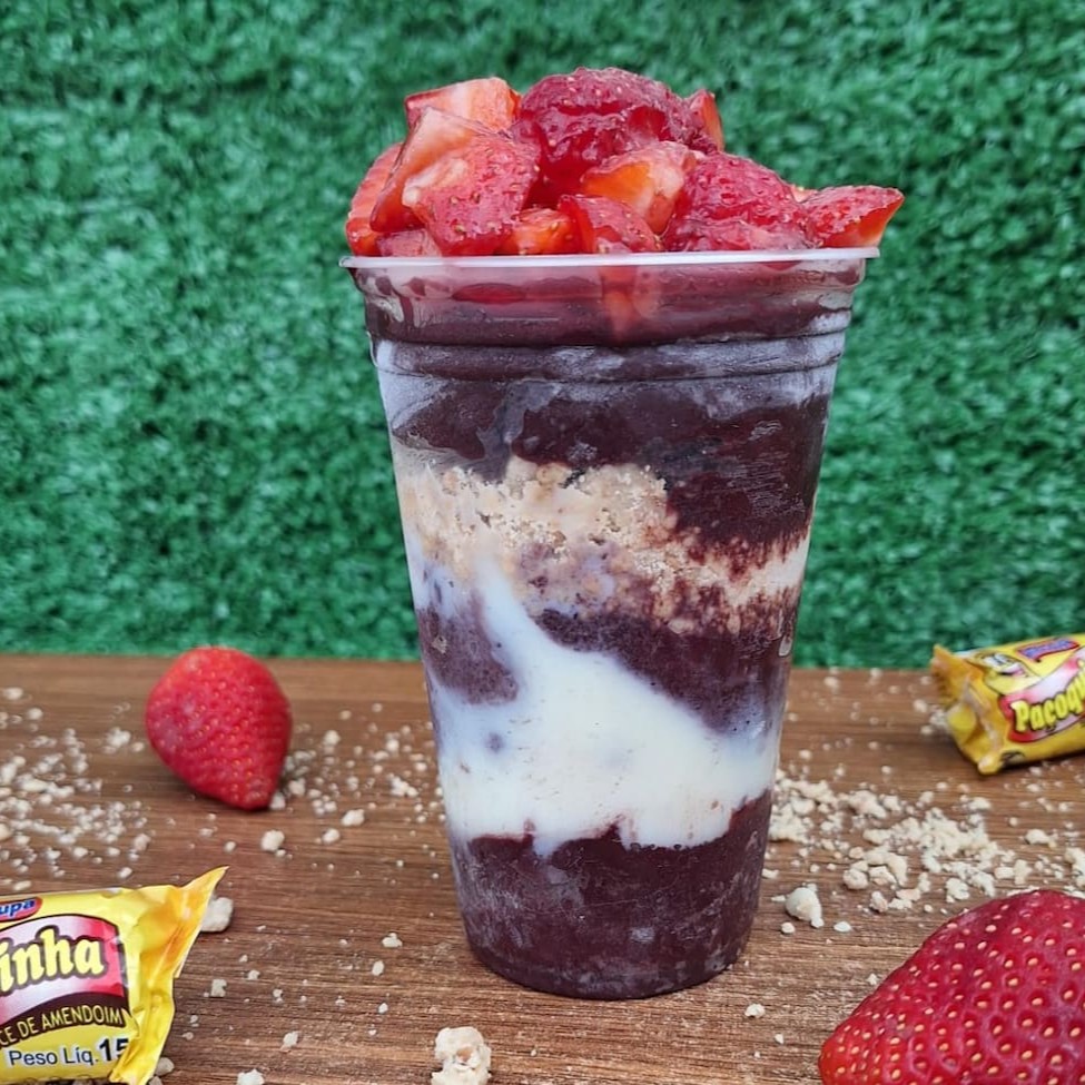 Açaí Robin 300ml: Açai+leite Condensado+paçoca+morango