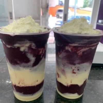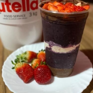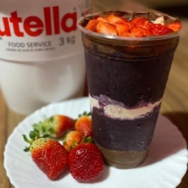 Delicioso creme de açaí super cremoso, além disso, a verdadeira e irresistível Nutella, acompanha leite condensado e morangos frescos.