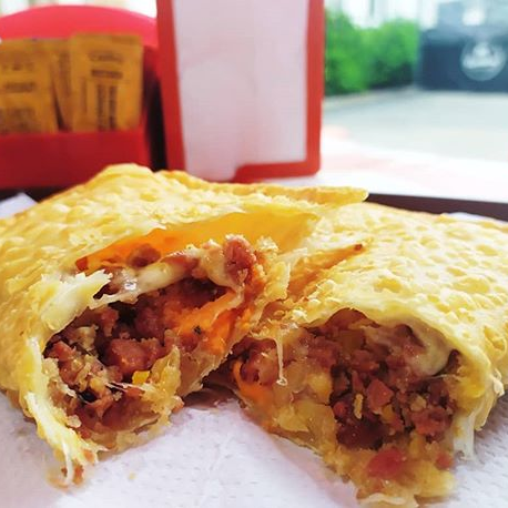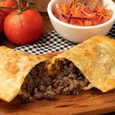 Pastel com 100 gramas de carne ,com tamanho aproximadamente 20 cen
