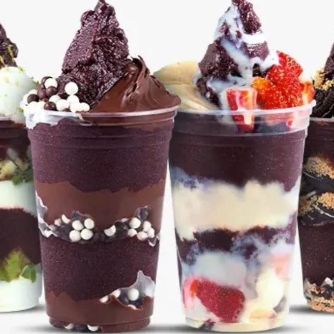 Faça suas escolha e se surpreenda! Divida com a galera e se divirta. (Foto meramente ilustrativa). ***As opções de cremes, são da escolha do cliente. Cada copo é possível escolher duas opções. ** Foto meramente ilustrativa.