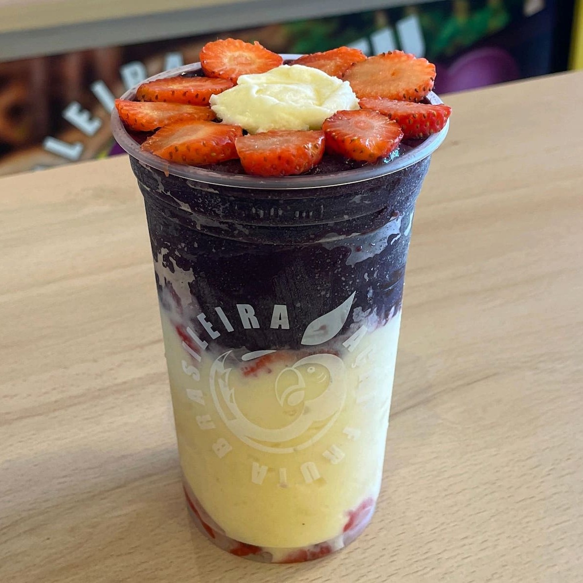 Combo perfeito para matar a fome e refrescar o Dia. Escolha seus acompanhamentos favoritos e monte do seu jeito: frutas, granola, leite condensado, paçoca, leite em pó e muito mais. Ideal para quem ama sabor e energia
