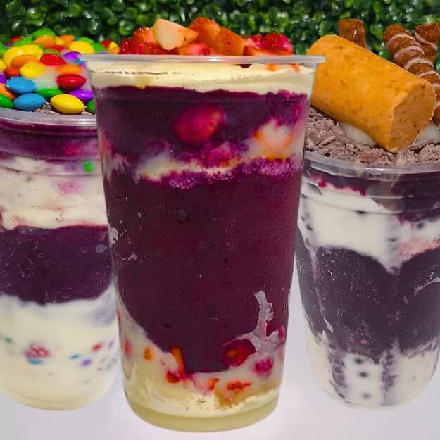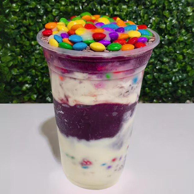 Monte seu cupuaçu com 6 complementos grátis e aproveite um copo generoso e irresistível! Escolha suas combinações preferidas e monte a sobremesa perfeita — cremosa, refrescante e feita na hora.