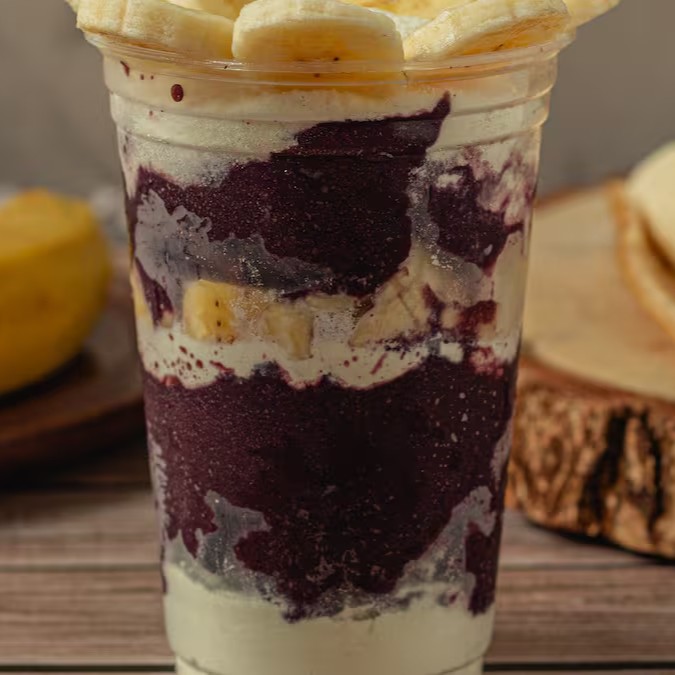 Nosso delicioso creme de açaí natural,recheado com uma combinação de leite condensado, leite em pó e bananas fresquinhas.