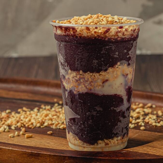 Nosso delicioso creme de açaí recheado com uma combinação perfeita de leite condensado e amendoim.