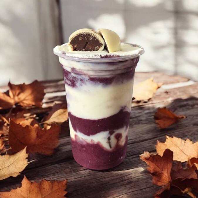 Açaí, creme de Ninho e Ouro Branco.