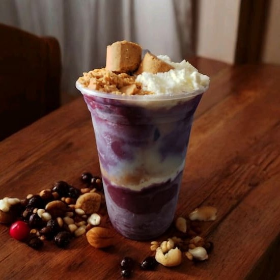 Açaí,leite condensado, leite em pó e Muita Banana.