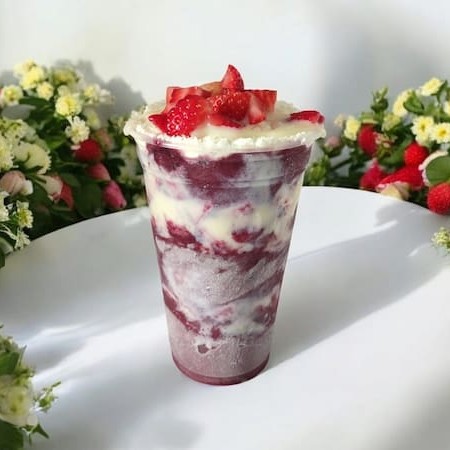 Açaí, leite condensado leite em pó e Muito Morango.