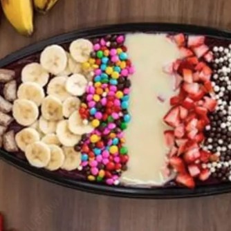 Barca de açaí feita com cremosidade e sabor irresistíveis! Escolha 4 ou 5 dos seus condimentos favoritos, como frutas frescas, granola, leite condensado, confeitos coloridos, creme de avelã e muito mais. Personalize sua experiência e aproveite essa delícia refrescante do jeito que você gosta! Serve 1 pessoa.
