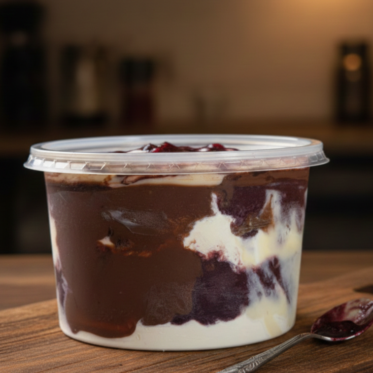 Açaí 1l Trufado Ouro Branco Para quem não brinca em serviço! Um litro de açaí premium, extremamente cremoso, montado em camadas generosas de: Creme de Ninho . Creme de Avelã (sabor intenso). leite condensado e Muito Leite em Pó para dar aquele toque especial. Finalizado com pedaços de bombom Ouro Branco crocante. Serve bem até 3 pessoas (ou uma muito faminta!).