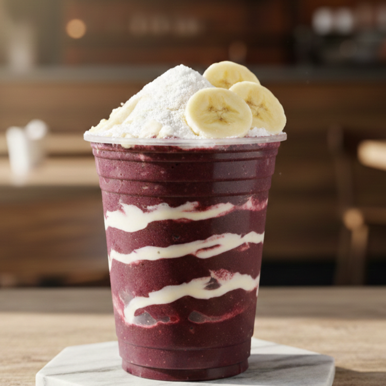 Banana + Leite em Pó + Leite Condensado + Açaí. 🍌🥛 A combinação que é sucesso absoluto! Peça agora o seu e descubra por que este é o queridinho da galera."