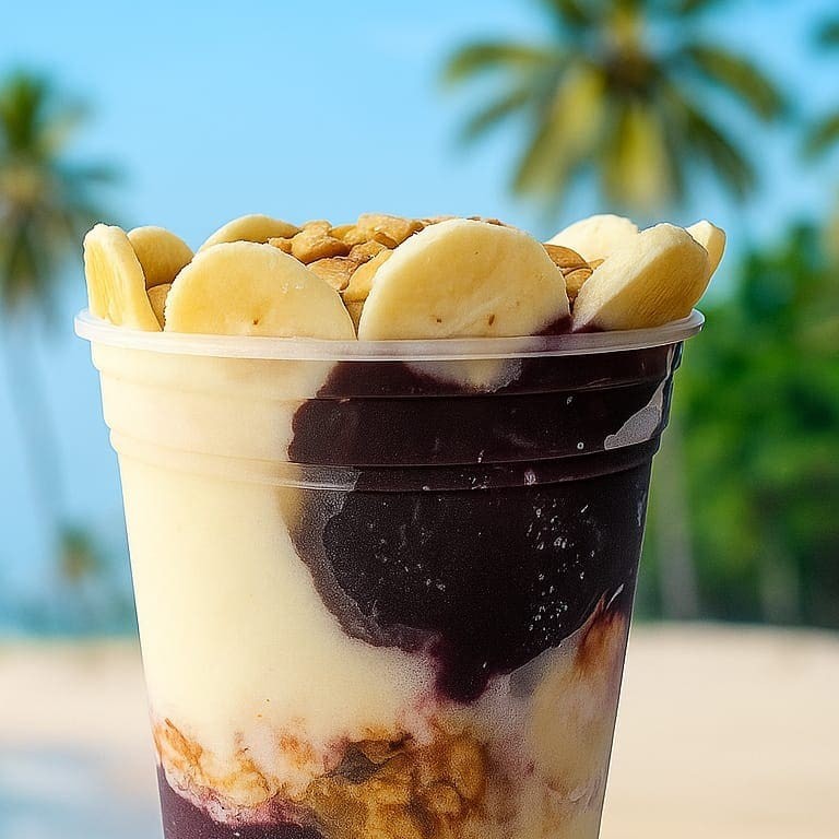 Açaí + leite condensado + banana + granola. Recarregar a bateria ! Atenção: As imagens são apenas ilustrativas e servem para demonstrar a montagem do produto.