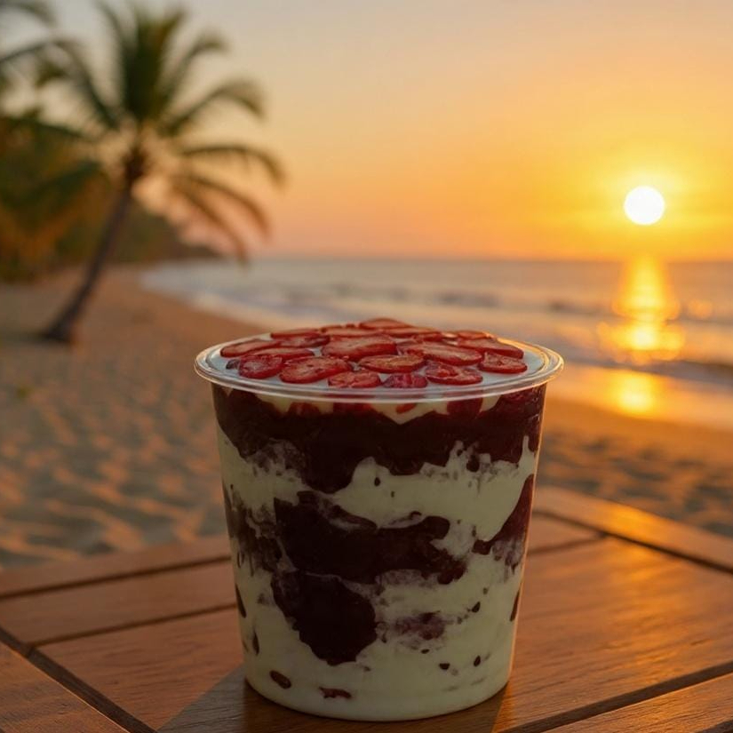 Açaí 1 Litro + Creme De Avelã + Mousse De Leite Ninho + Morango