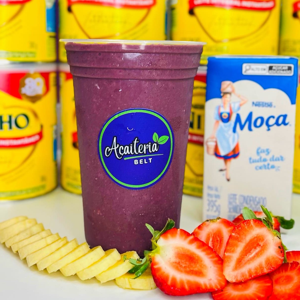 Deliciosa Vitamina de Açaí, Acompanha Banana, Morango, Leite Ninho, Leite condensado