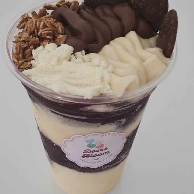 Um copo extremamente divertido e saboroso, nessa combinação de sabores temos o creme de Avelã, Confete, Paçoca.