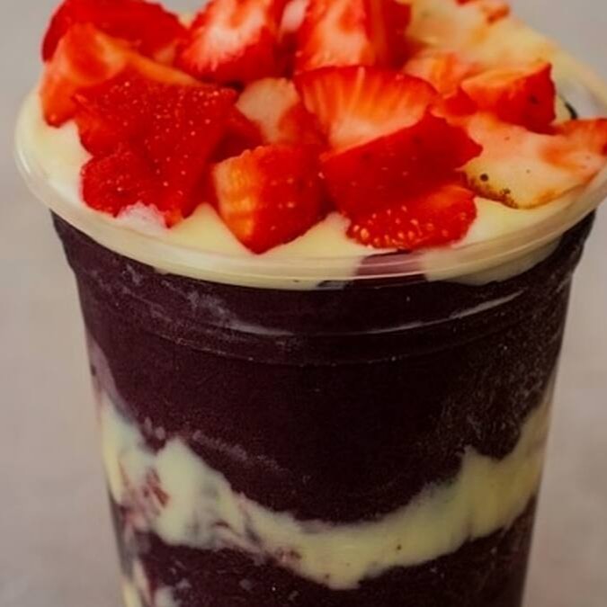 Uma maravilhosa combinação do Açaí e cupuaçu, acompanhamentos Leite Ninho, Creme de Leitinho e Avelã.
