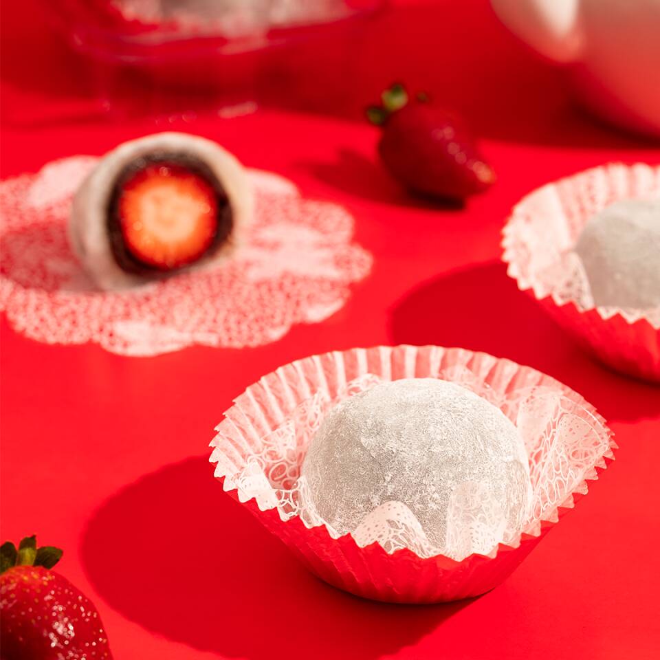 Uma joia da confeitaria japonesa! Morango fresco envolto em uma camada macia de mochi (massa de arroz glutinoso) e recheado com doce de feijão azuki. Equilíbrio perfeito entre o doce suave e o azedinho da fruta, com textura única e sabor delicado. Uma experiência tradicional e irresistível!