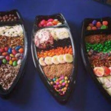Açaí premium cremoso servido na barca de 1, kg com todos os complementos gratis servidos a gosto do cliente.