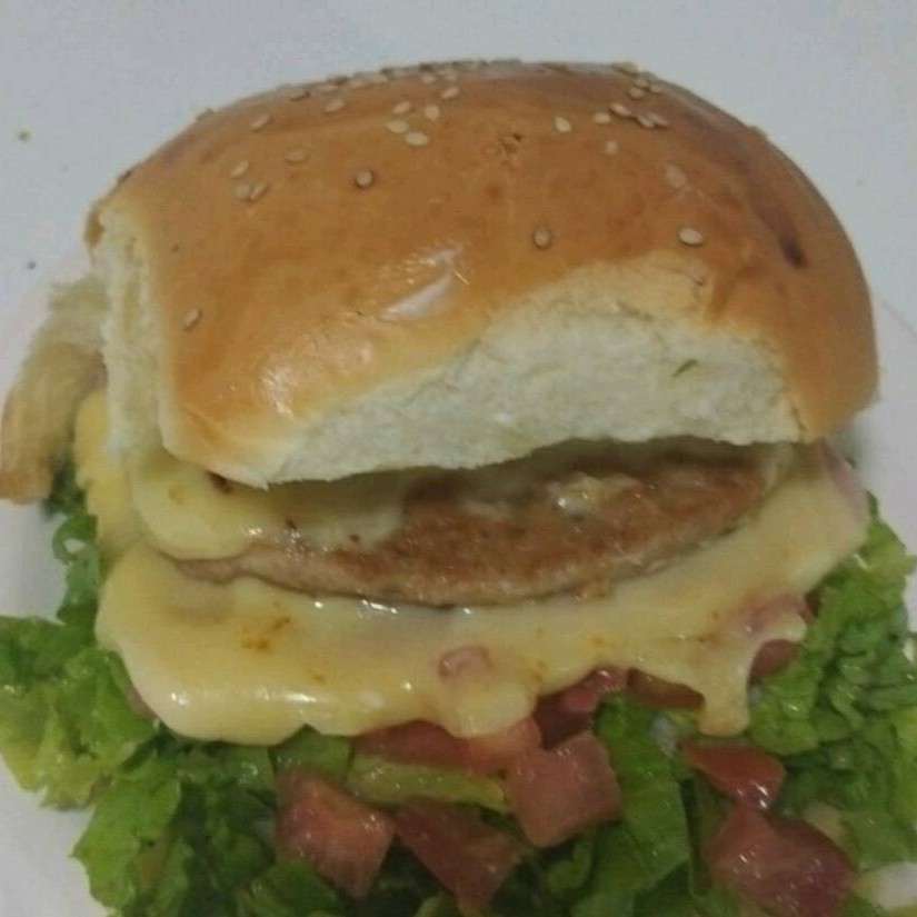 Pão de hambúrguer maionese presunto queijo tomate alface hambúrguer....