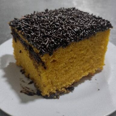 Bolo de cenoura e cobertura de chocolate e granulado com 220 gr