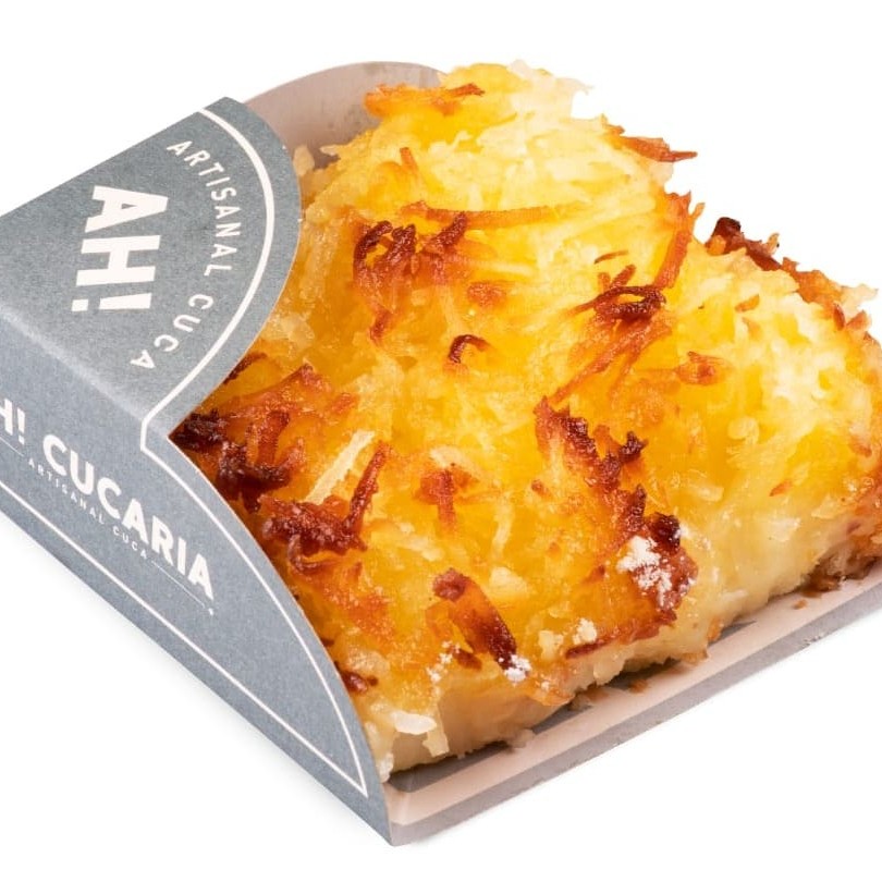Outro clássico, a cuca de coco surpreende a cada mordida. A mistura da massa fofinha com o creme de baunilha e aquela generosa camada de coco com as pontas douradinhas, sem dúvidas, quando acaba deixa saudades.