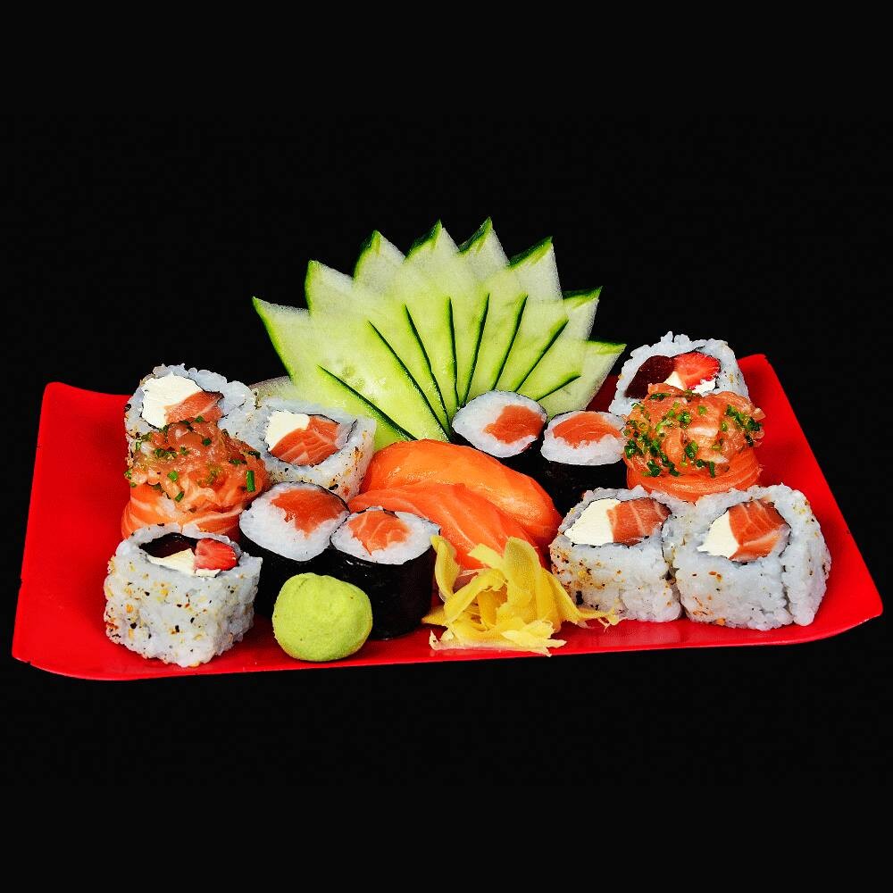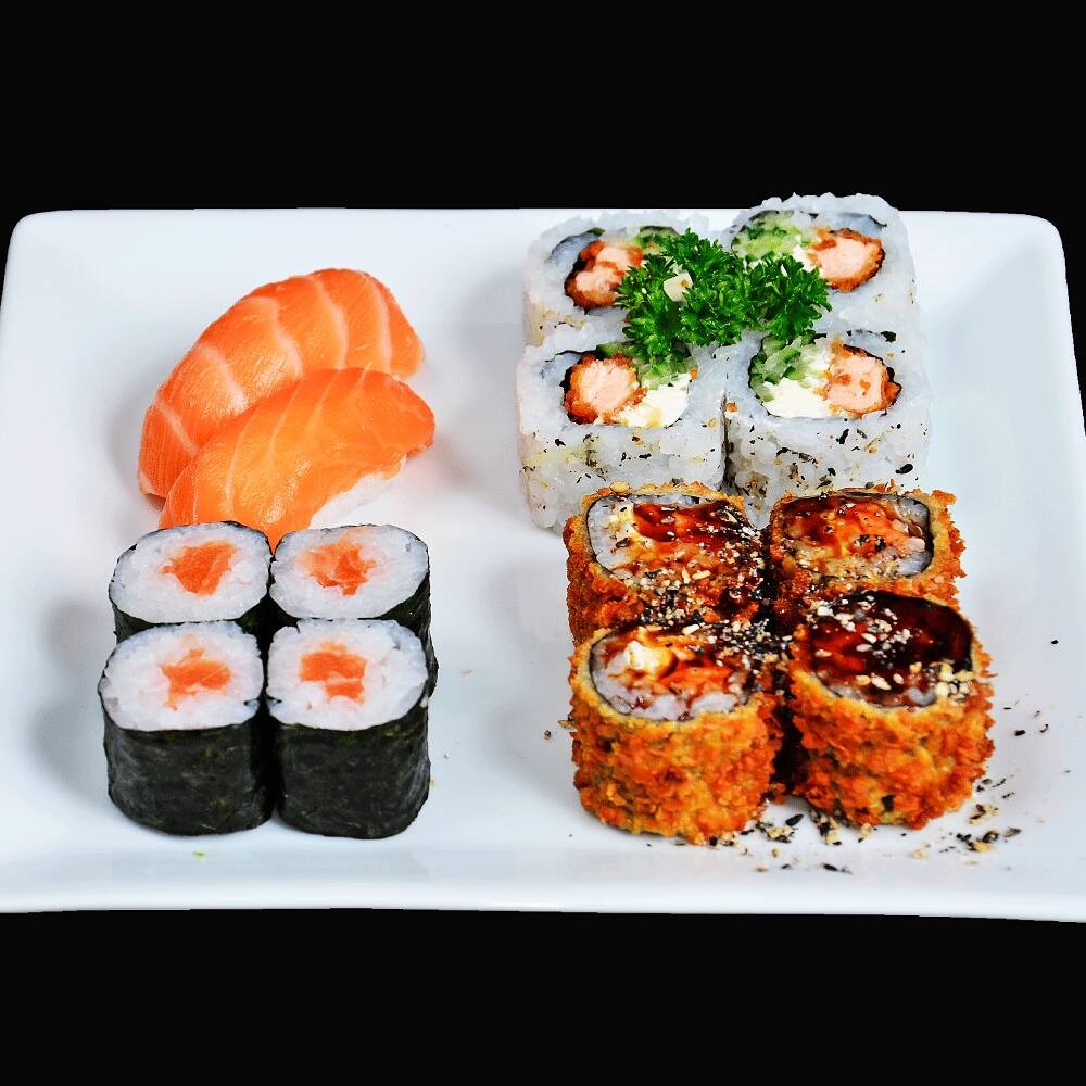 • 6 Niguiri Alho-Poró • 2 Joe Maracujá • 2 Joe Alho-Poró • 4 Uramaki Filadélfia • 8 Sashimi de Salmão