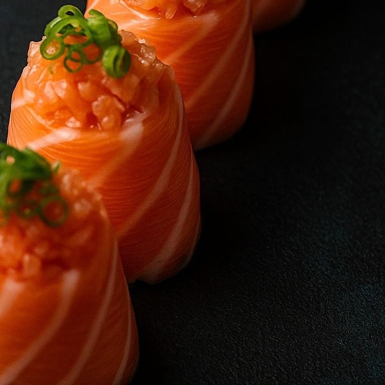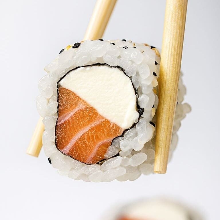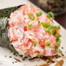 Clássico da culinária japonesa! Arroz e salmão fresco envoltos em alga nori. Simples, leve e cheio de sabor